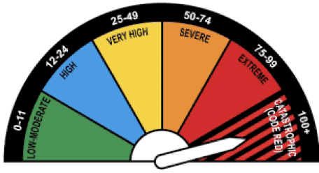 Have you ever seen a sign displaying the risk of fire weather conditions for the day? This sign shows the Forest Fire Danger Index, which indicates the probability of fire weather.